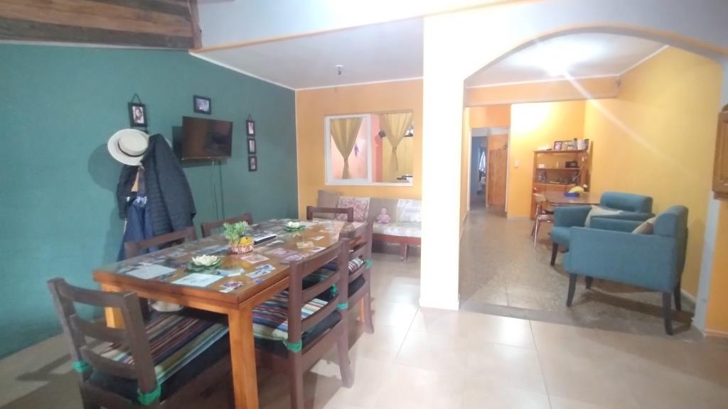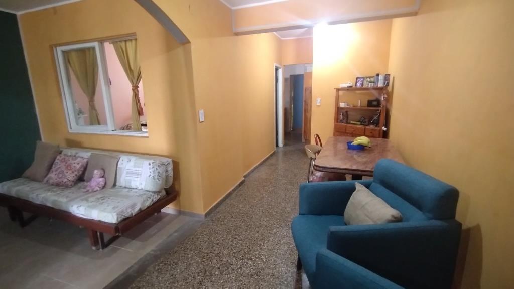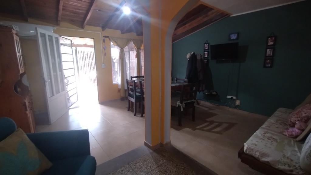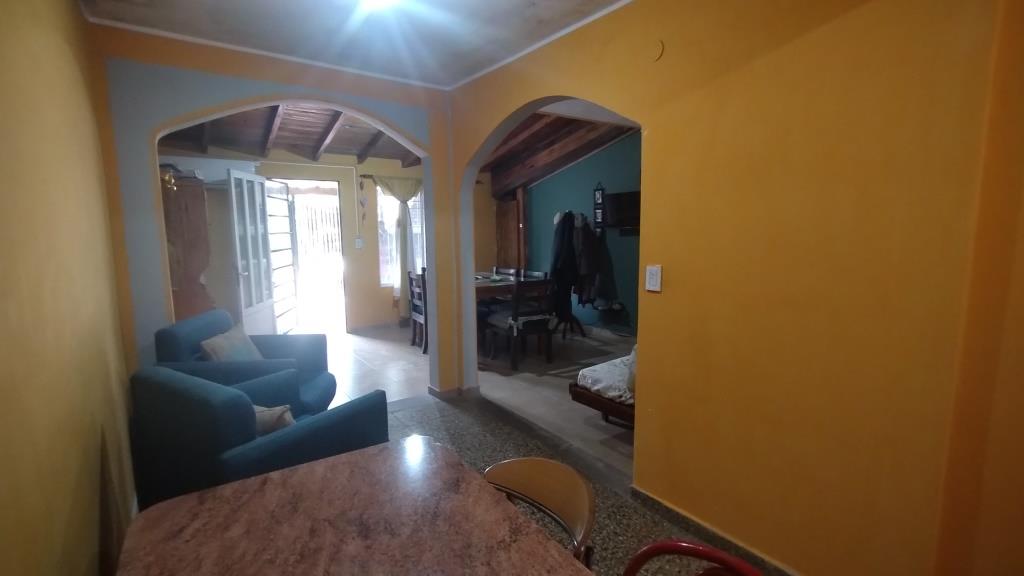 Para ingresar a la casa propiamente dicha atravesamos un espacio semicubierto que hace las veces de quincho con una buena parrilla. Una vez dentro de la casa nos recibe un amplio living comedor, el baño tiene dividido la zona de toilete, la cocina esta separada y cuenta con dos dormitorios y un pequeño patio trasero.