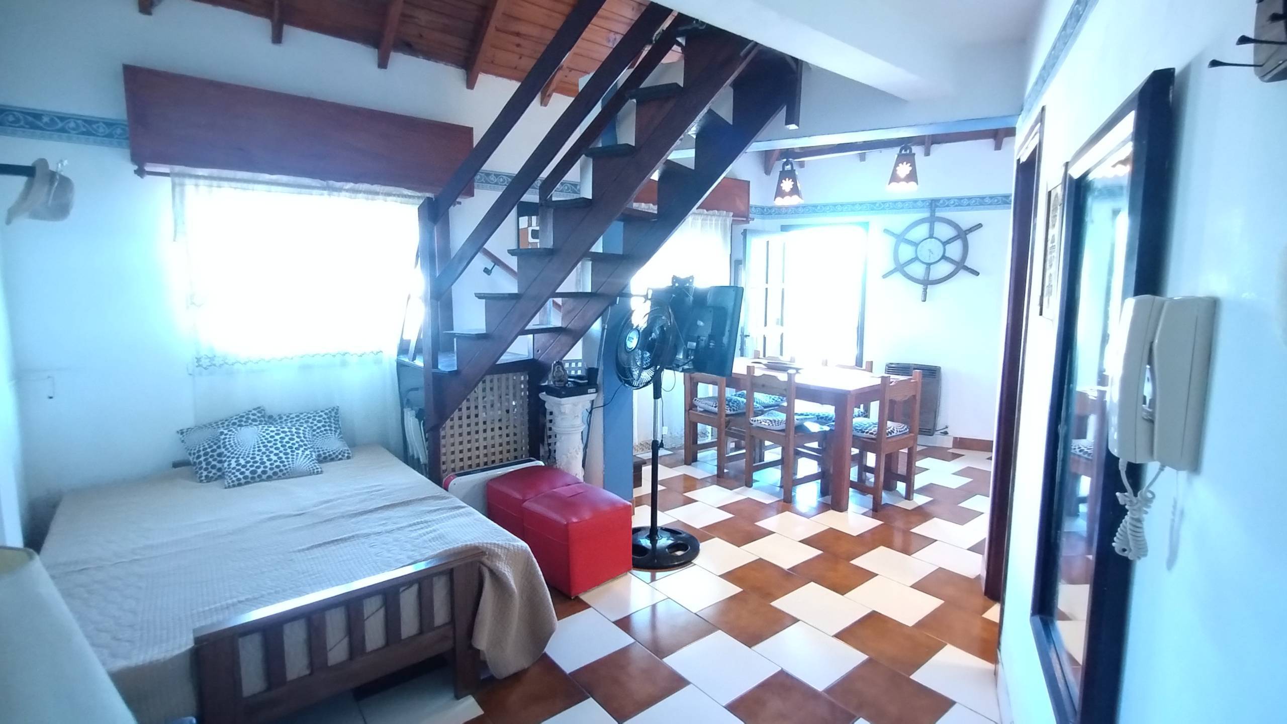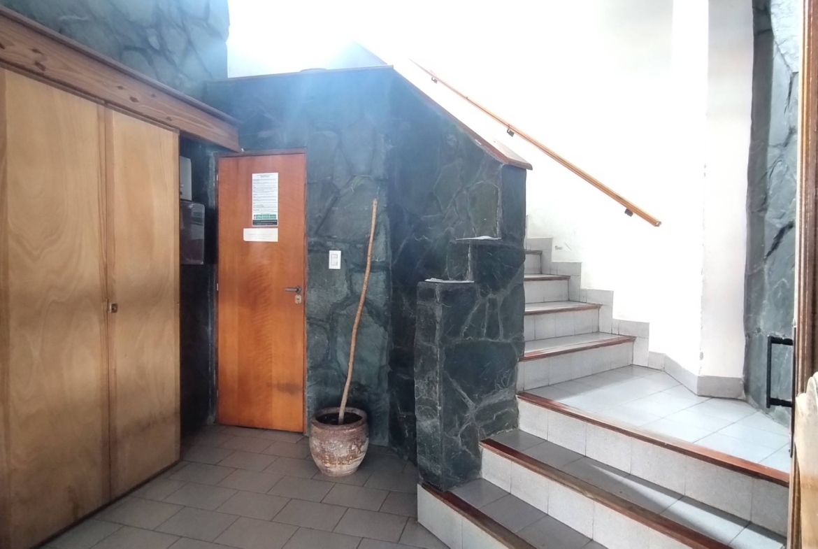 El departamento esta en un segundo piso por escalera con balcón al frente. Al ingreso del mismo encontramos un ambiente de amplias dimensiones muy ventilado y luminoso donde esta dispuesto un living comedor con cocina integrada y el baño.
